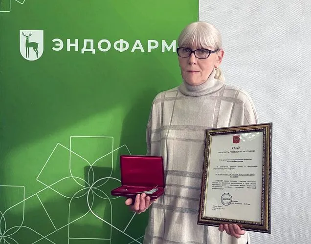 Советник генерального директора по обеспечению законодательства в сфере оборота наркотических средств и психотропных веществ ФГУП "Эндофарм" Марина Малькова награждена государственной медалью ордена «За заслуги перед Отечеством» II степени